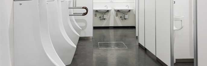床に飛び散った尿や尿石に含まれる有機物が、排水や空気中のバクテリアによって腐敗することで悪臭が発生。消臭・除菌性能の高いフロアタイルへの交換がおすすめです。