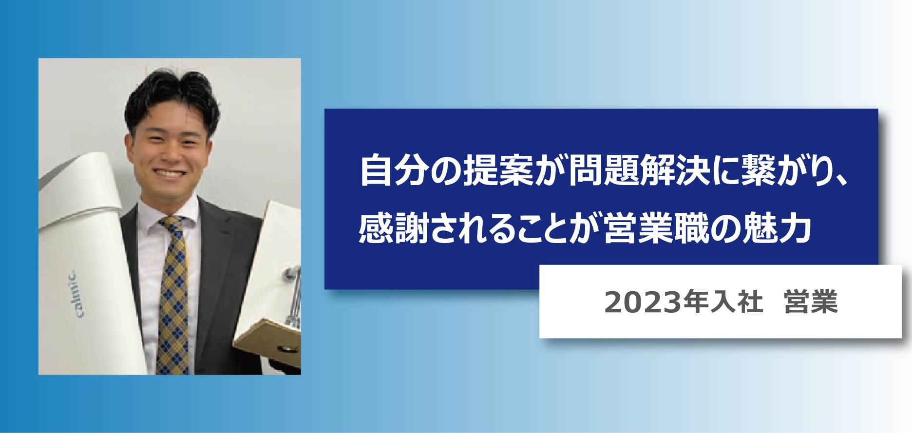 カルミックの営業職は飽きることのない、刺激の多い仕事です。毎日学ぶことがあり、日々知識と経験が増えていきますので、自分自身の成長を実感することができます。
