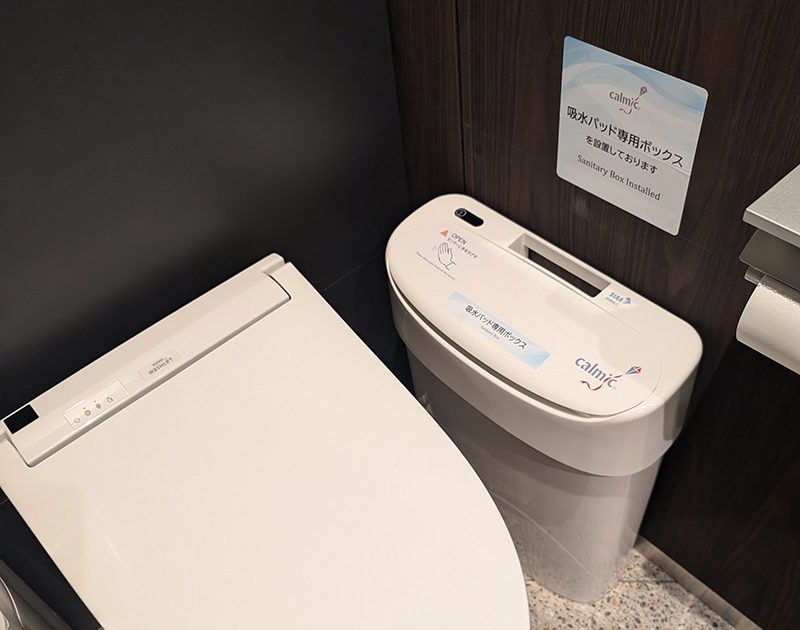 今、男性用トイレにもサニタリーボックスの設置が増えています。