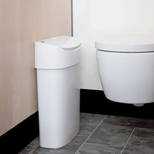 3つ目のヒントは、安心できる衛生用品の設置です。女子トイレでは、サニタリーボックスの設置は必要不可欠ですが、どのようなサニタリーボックスが置かれているのでしょうか。手で蓋を開けるタイプだとボックス自体が清潔ではなさそうで触りたくないですよね。他の人が捨てた生理用品が見えていたら…?清潔でない環境はさらなる清潔でない環境を生み出し悪循環となってしまうことも。